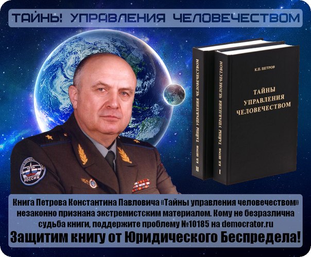 ------------------------------ [1], [2] Двухтомник К.П.Петрова "Тайны управления человечеством" - это сильный АНТИ-экстремистский материал. Очень похоже, что "экстремистской" эту книгу объявили с подачи тех сил, которые хотят дестабилизировать обстановку в стране, и которым материалы КОБ (в т.ч. и книга Петрова) в этом мешают. И что же предлагаете вы? Вы предлагаете нам работать на реализацию планов тех, кто заказал запрет книги. Оно нам надо? Прежде чем что-то писать - хорошо подумайте, на кого будет работать ваше предложение. Админ |