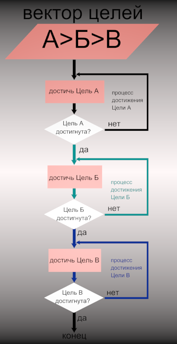 Вектор целей расписанный в блок-схеме. А>Б>В означает, что Цель А - самая важная, цель В- самая незначительная.