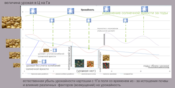 1) Есть некий процесс которым мы хотим управлять и у него есть желаемые и нежелательные конечные состояния. 2) Есть идеальный режим управления процессом (без возмущающих воздействий) который формируется пошагово тем же методом динамич. программирования от конечного состояния вспять к начальному, дорисовывая как объективно возможные промежуточные состояния, так и конкретные шаги (управляющие воздействия) между этими состояниями 3) Есть процессы - вредители затрагивающие управляемый процесс, которые своими возмущениями могут привести наш процесс к нежелательному конечному состоянию. 4) Есть опыт и предвидение множества недопустимых состояний процесса, и способов компенсации возмущений. ![]() http://3.bp.blogspot.com/-KCNAJMUgz2...%BE%D1%832.png Пример - опять самый понятный и бытовой 1) Управляемый процесс - выращивание картошки , желаемое состояние - большой урожай, нежелательное конечное состояние - отсутствие урожая. 2) Идеальный режим - посеял , поливеашь, через несколько месяцев собираешь большой урожай, погода устойчивая, теплая, насекомых- вредителей нету. 3) Вредный процесс - размножение насекомых - жрущих корнеполоды, которые могут пожрать весь урожай (колорадский, медведка, проволочник,и др.) 4) Есть опыт борьбы с насекомыми и предвидение того, когда эти насекомые проснуться, выползут из земли, и начнут жрать урожай + есть знание о том насколько РАНЬШЕ до пробуждения вредителей надо оказывать воздействие на них (и вредные процессы), чтобы УСПЕТЬ скомпенсировать возмущение. - Короче насколько раньше до появления насекомых - вредителей нужно обрабатывать картошку, разводить др. насекомых - защитников или сажать растения - защитники, отпугивающие вредителей, так чтобы на выходе был в идеале нетронутый урожай.