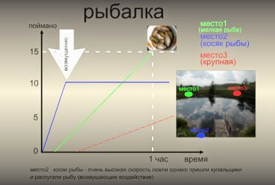 Пример 1 ![]() http://1.bp.blogspot.com/-5yfHAYbSRd...%B3%D1%801.png На этом графике в условных координатах изображен уровень воды в ванне (или в бассейне/цистерне и др.) в зависимости от времени. По нему можно сказать когда ванна была наполнена , что происходило, когда сливалась вода, когда ванна снова наполнялась - смотря на этот график можно понять что происходило - выявить процесс - слив воды и зафиксировать время управляющих воздействий. Пример 2 ![]() http://2.bp.blogspot.com/-EceFO_n5DX...%B3%D1%802.png Здесь показано расстояние машины от заправки и скорость движения машины в зависимости от времени. На нем видно когда машина начала тормозить, развернулась и поехала в обратную сторону и когда она вернулась в заправке. Пример 3 ![]() http://3.bp.blogspot.com/-xwSNFpD7A9...%B3%D1%803.png На этом рисунке показана урожайность картофеля на 1 Га земли и ее изменение по времени (от годов сбора урожая). Плавная линия (голубая пунктирная) - постепенный спад урожайности из - за истощения почвы. Красная линия с колебаниями та же что и голубая но с учетом колебаний урожайности в зависимости от изменения активности солнца. В верху графика желтая синусойда - в условных координатах - колебание солнечной активности. Проседание синей линии до нуля - отсутствие урожайности из - за колорадского жука. и в правой части графика резкий скачек фиолетовой линии в верх - повышение урожайности в следующем году - перекопка истощающегося участка с черноземом, повышающим урожайность. Пример 4 ![]() http://1.bp.blogspot.com/-1SbhWNdf9h...0%B6%D0%B0.png Этот рисунок - общий объем продаж магазина в условных руб/день. С момента открытия магазина объем продаж увеличивался и должен был достигнуть насыщения, однако затем он быстро упал на половину. Т.е. процесс роста посещаемости магазина понес ущерб - а источник ущерба - появления серьезного конкурента. При этом весь объем продаж состоит из суммы продаж: Мясо+рыба+молочные+крупы+овощи. При этом после спада - ПРОПОРЦИИ в продажах тоже изменились - прежде всего пострадала торговля рыбой и мясом - их доля сильно упала. После чего делается вывод- конкурент- поставщик прежде всего мясной и рыбной продукции. Тут важно иногда следить и за изменением других параметров, например за уровнем населения в поселке/город/районе, ведь спад продаж может быть и результатом оттока населения из этого места, НО тогда спад объема продаж будет равномерным и медленным (т.е. пропорции в продажах: мясо+рыба+молочные+крупы+овощи останется прежним)
