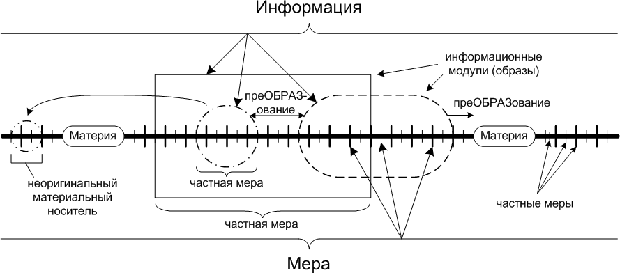 2) Все "материальное" (с точки зрения стандартных понятий) в мире есть триединство материя+мера+информация.