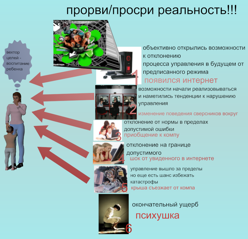 ![]() Состояние №1 - накачка толпы негативом (эгрегор подпитывается как за счет новых входящих в него людей так и за счет возрастающего информационно-эмоционального давления) Состояние№2 разрядка эгрегора (со всеми вытекающими последствиями). В умолчаниях: 1) показана матрица как последовательность негативных образов, однако субъект и система управления не показаны 2) Разряд эгрегора тут показан как негативное воздействие на элементы самого этого эгрегора хотя (как например на майдане) разрядка может быть и на других людей (короче говоря раскручиваем эгрегор одной толпы и направляем на другую толпу)