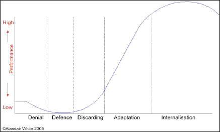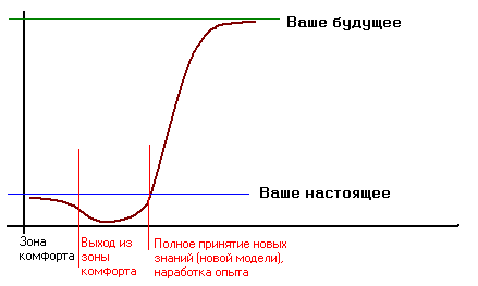 Учитывая, что КПЕ открыто к новым и полезным знаниям и старается вобрать в себя всё лучшее (искренне верю, что в будущем КПЕ напишет свою дополненную и расширенную КОБ и ДОТУ) открываю эту тему, где я буду складировать полезные знания преимущественно управленческого характера, которые любой желающий может потом использовать. Если вы тоже знакомы со знаниями, которые могут быть полезны – делитесь! Цикл Карнела Цикл Карнела или как его ещё называют цикл преобразований или цикл изменений (ориг. - coping cycle) появился из опыта работы Карнела в области управления и внедрения изменений в организациях а также на основе работ «de Vries and Miller (op. cit.) and Adams (1976, Adams, J. et al – Transitions – Understanding and Managing Personal Change, 1976, Martin Robinson)». Карнела наблюдал, что когда объектом изменения является человек, то последний испытывает большую проблему в связи с преодолением своего эго или чувства собственного достоинства, а так же нежеланием выхода из зоны комфорта. Так же большинство людей считают, что любые новые изменения нарушат их производительность. И они правы, в том, что нарушит производительность, но только на начальном этапе... Таким образом, внедряя изменения и наблюдая за процессом Карнел определил пять основных этапов и вывел цикл, который и был в последствии назван "Carnall coping cycle" (Цикл преобразований Карнела) или просто "coping cycle" (Цикл Карнела). Выглядит это следующим образом: Стадии цикла: - первая стадия, зона комфорта или отказ от изменений (обозначено словом denial - отказ) - человек находится в зоне комфорта. Когда ему предлагают измениться, то он вдруг осознаёт, что текущий способ работы или образ жизни это как раз то, что его устраивает и он испытывает страх и нежелание менять, развиваться дальше. Восновном это из-за лени, а также нежелания делать сверх усилия, ведь изменения всегда требуют дополнительных усилий. Таким образом для того, чтобы начать меняться и развиваться необходимо преодолеть зону комфорта и когда это происходит (когда он/его выходит/выводят из зона комфорта) его производительность начинает падать. Стадия названа отказом (denial), так как на это стадии происходит попытка отказа подвергнуться новым изменениям. - вторая стадия (обозначена словом defence - защита) начинается сразу же после выход из зоны комфорта. Человек всё ещё находится под влиянием старых привычек и стереотипов и зачастую неосознанно пытается вогнать новые изменения русло старой модели, которой он руководствовался находясь в зоне комфорта. Но противостояние между двумя новыми моделями (старым и новым образом жизни) лишь забирают энергию тем самым уменьшая производительность. Так же часто люди выполняют следующий ритуал: показывают полную готовность к изменениям, но параллельно доказывают, что новые изменения не принесут результата, что они не будут работать и т.д. и т.п. Грубо говоря, вторая стадия это попытка выйти из накатанной колеи. Стадия названа защитной (defence), так как на это стадии происходит попытка противостоять новым изменениям. Первая и вторая стадии символизируют прошлое, так как являются попыткой сопротивления. - третья стадия (обозначена словом discarding - списание) означает списание старой модели и полное принятие новой. Обычно перед самым отказом сопротивление достигает апогея и выражается следующим фаталистическим образом: если изменения должны произойти, то будет без 